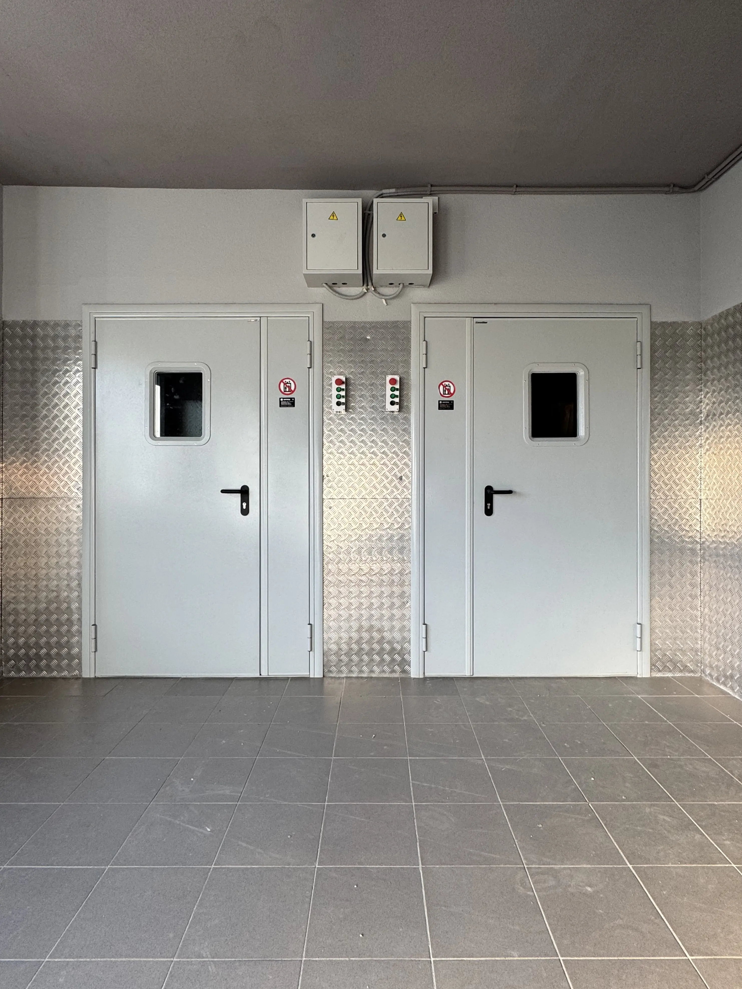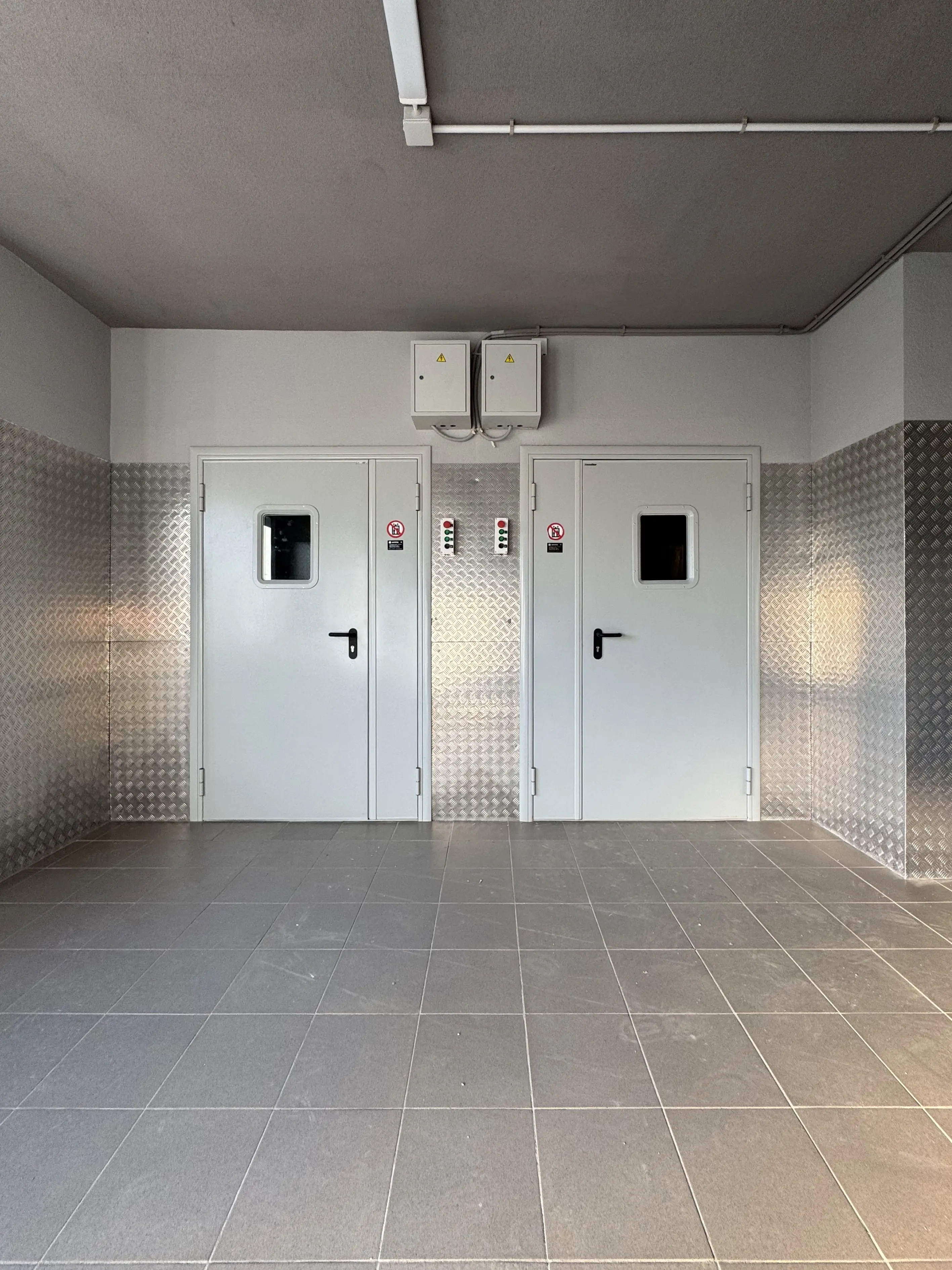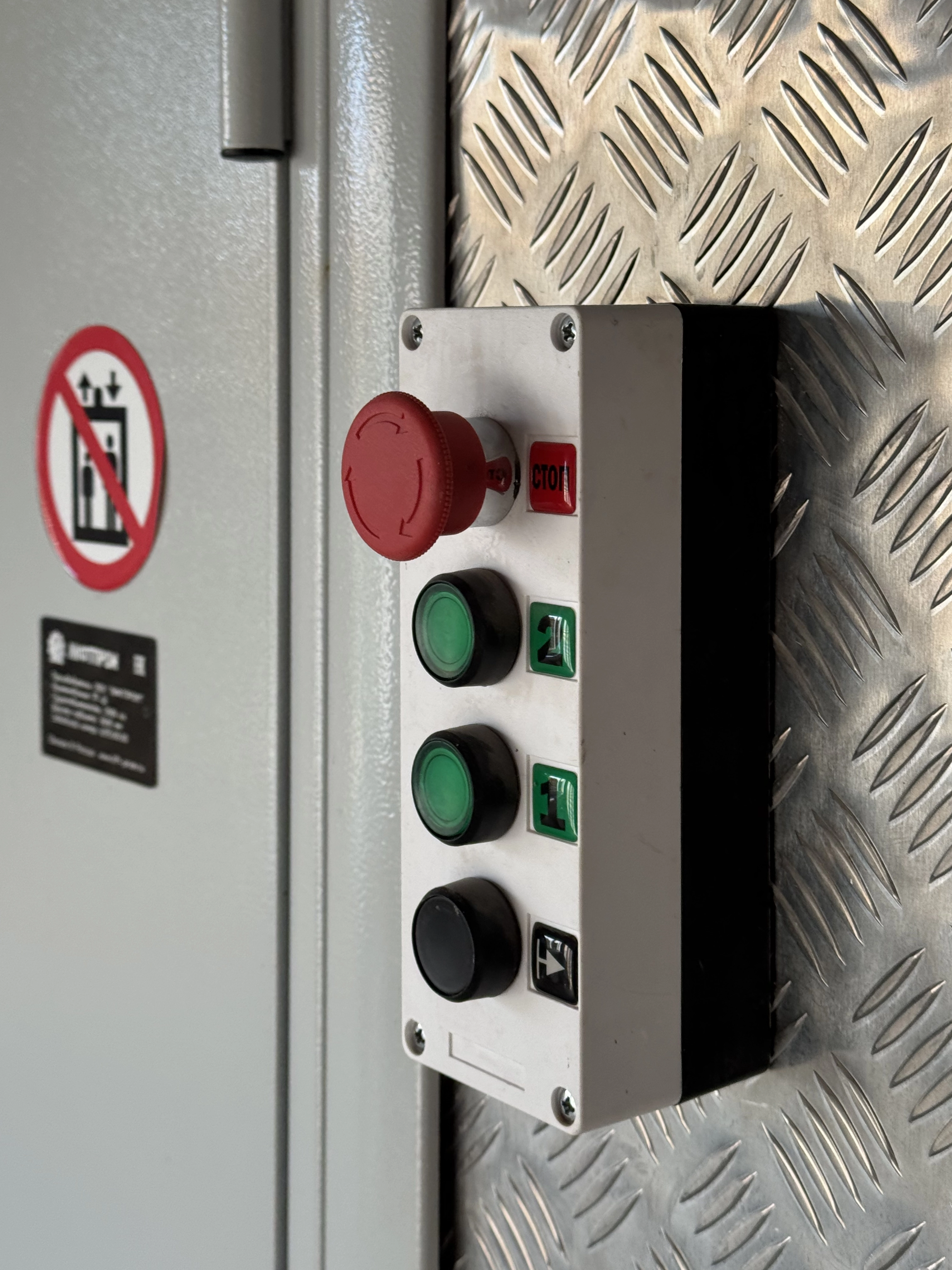Два грузовых шахтных подъёмника грузоподъёмностью 2000кг. Высота подъёма 3600мм, остановка на 3-х этажах.