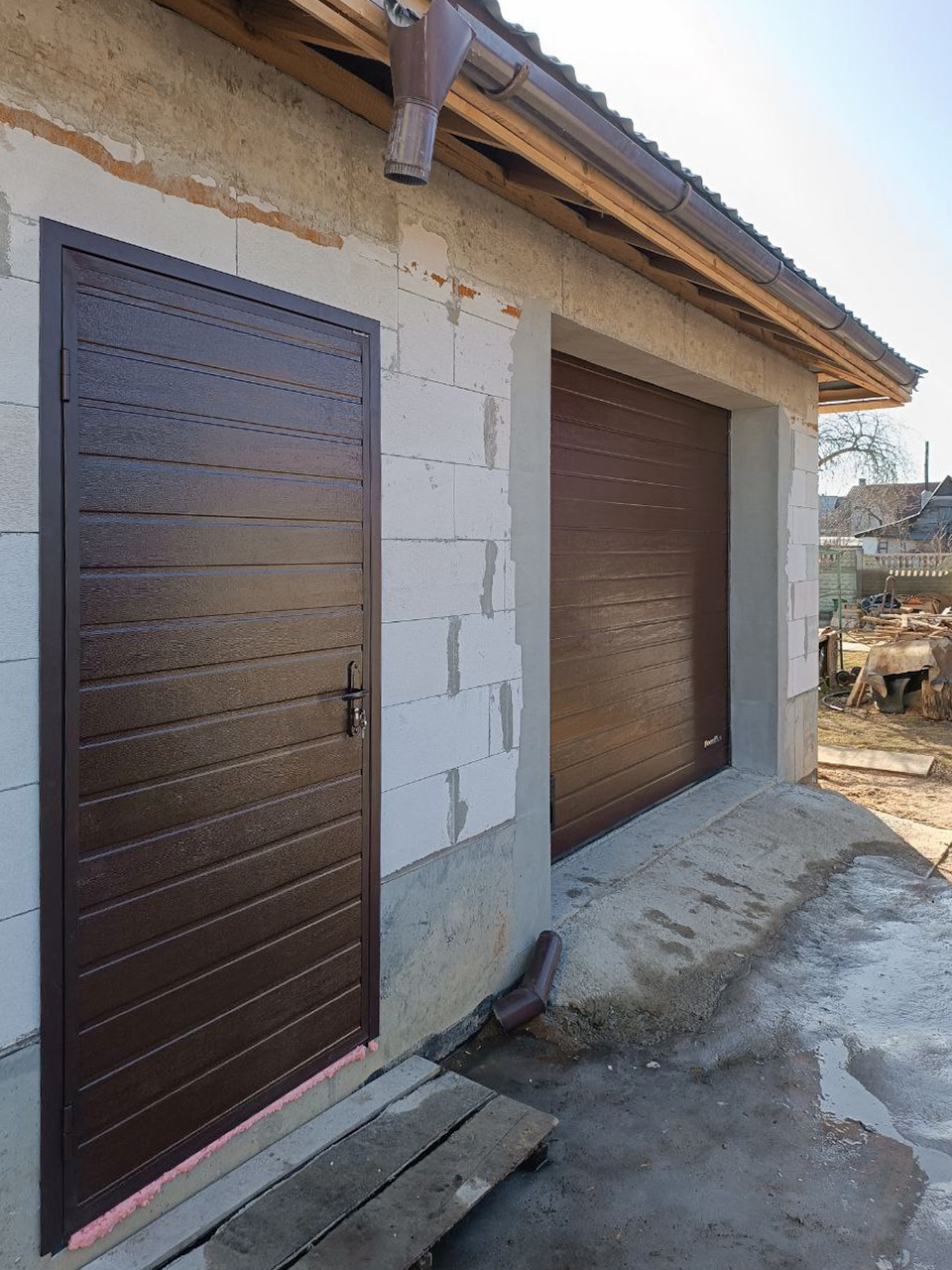 Данная дверь создана из сэндвич-панелей секционных ворот и её главное преимущество не красота, как многим кажется, а теплота.